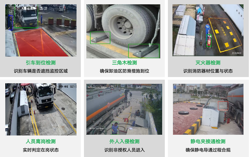 卸油八步法场景六种视频智能分析全覆盖,提供告警接收-联动-复核-处置-查询检索闭环逻辑,保障业务稳定运行