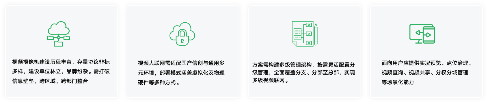 面向业务提供实况预览、点位治理、视频查询、视频共享、分权分域管理
