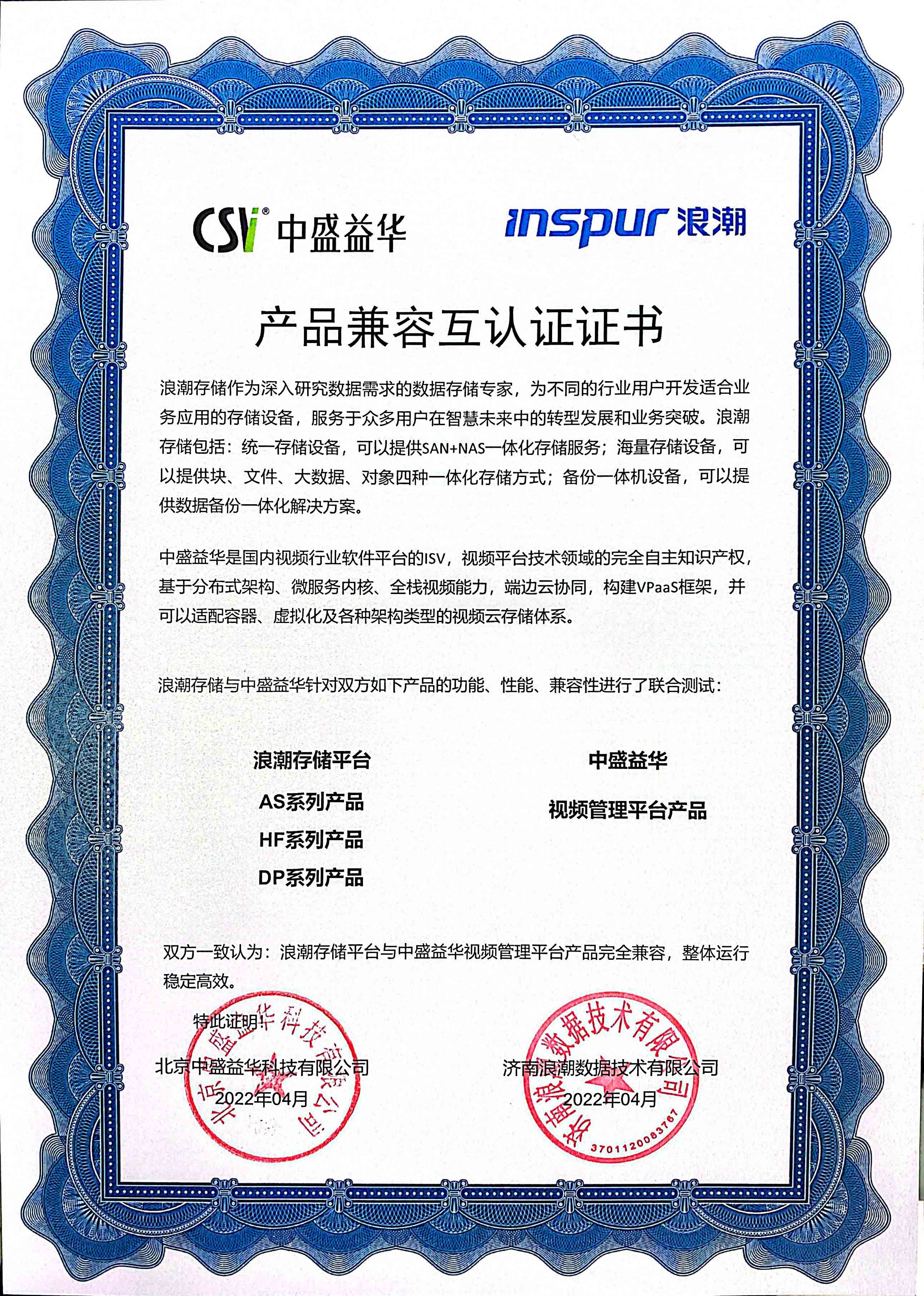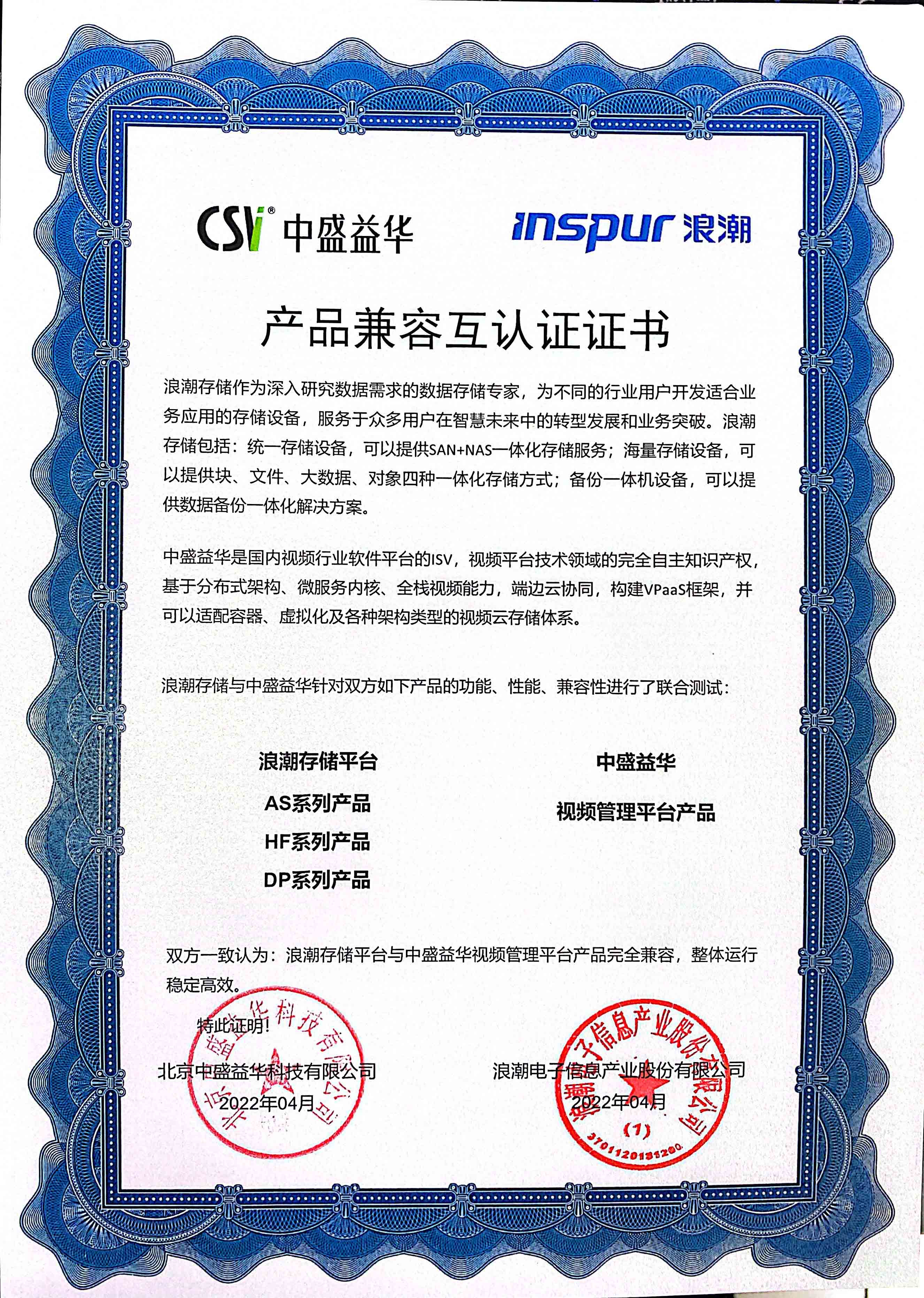 产品兼容互认认证书