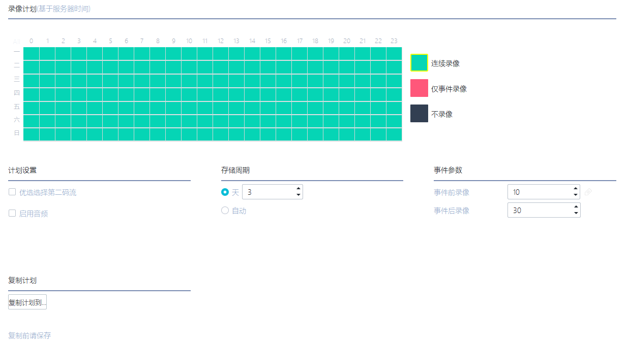 支持计划录像、报警录像;支持无限时间轴的随动回放,支持多路同步/异步回放,分段回放;支持录像计划管理、录像质量诊断等
