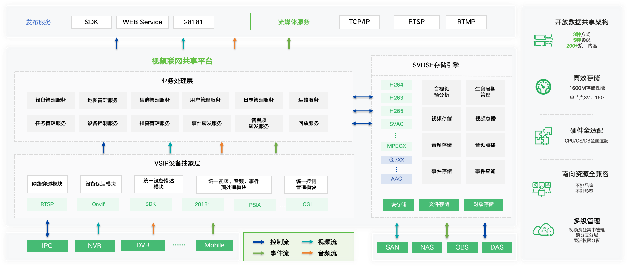 支持视频管理、图上应用、显控管理、检索查询等全量视频业务